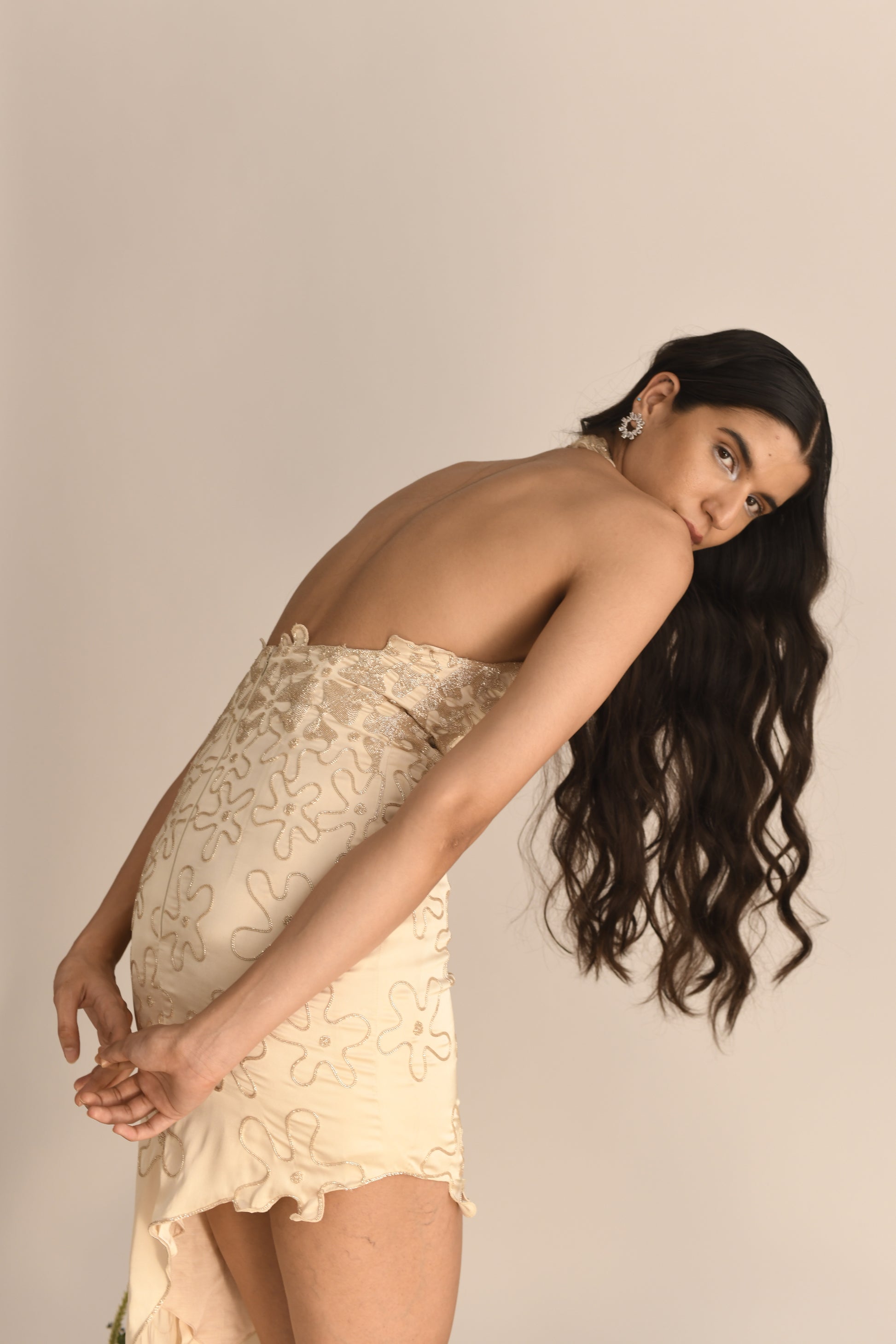 A-symmetrical Dress with hand embroidered amoeba flowers